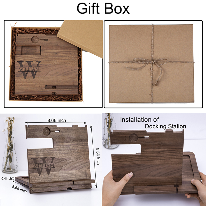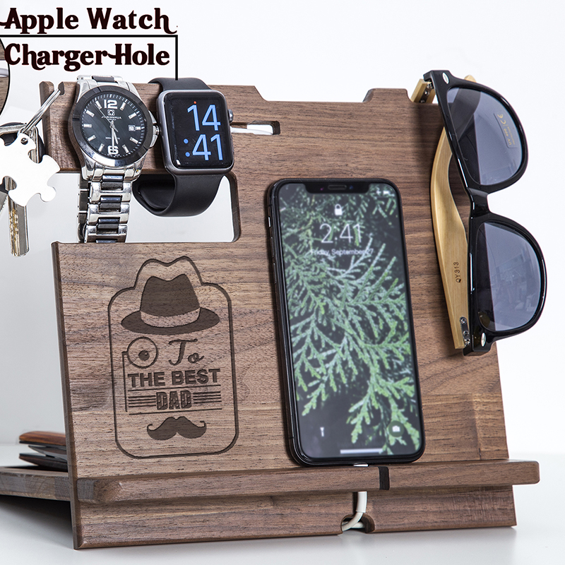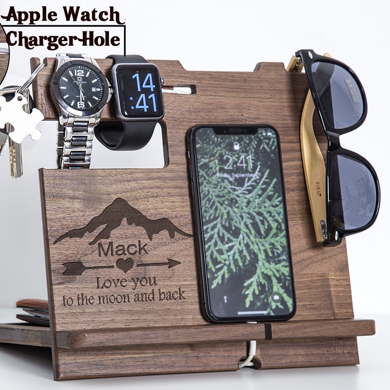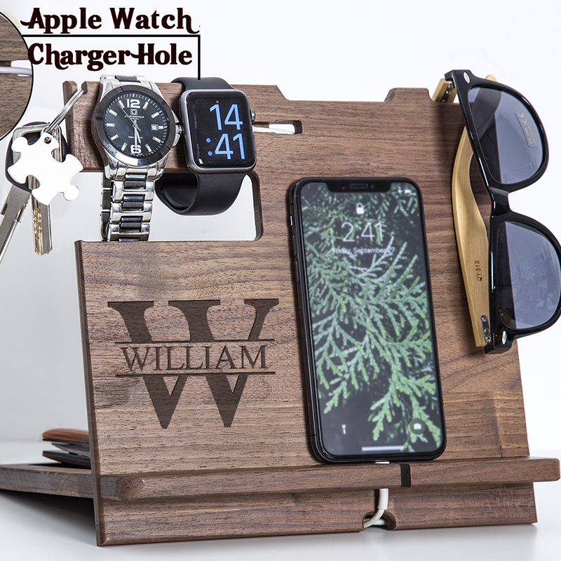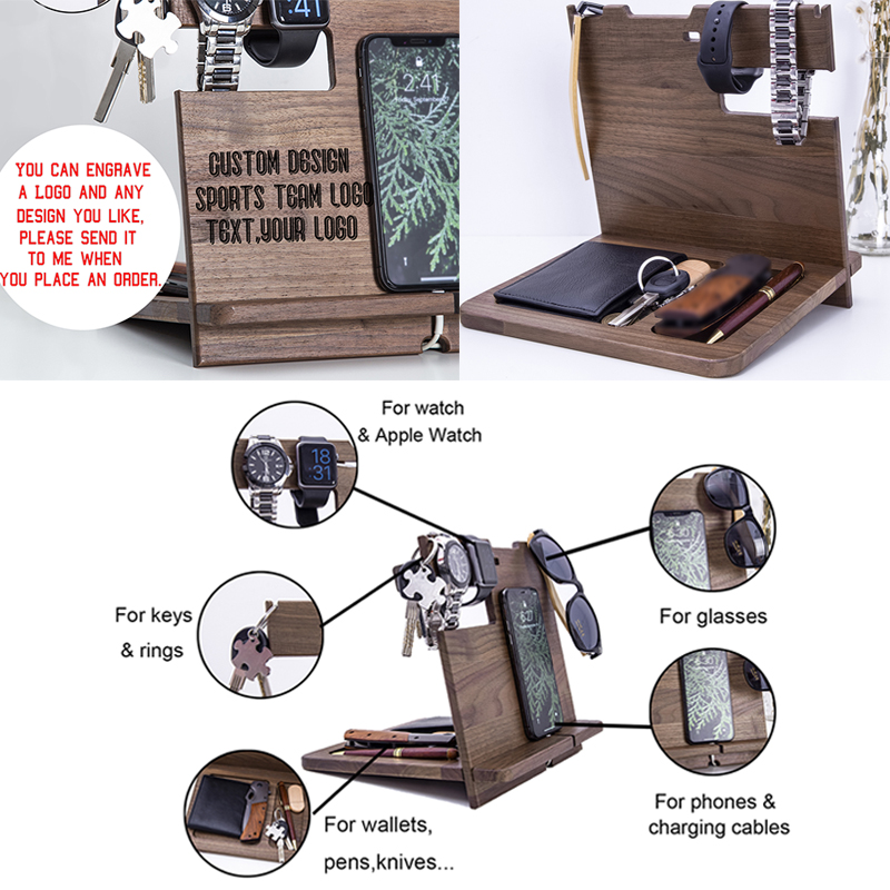 Our docking station is engraved with a beautiful design. It will be wonderful gift idea for men, dad, husband, boyfriend, brother or son. It can hold your glass, phone, wallet, keys, watch and so on.