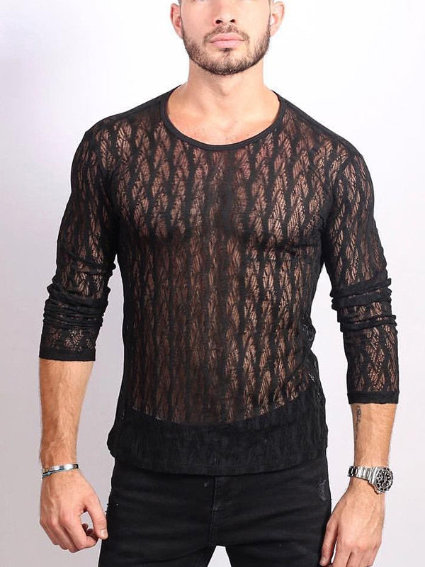 Mens Sexy Mesh Jacquard Long-sleeved T-Shirts SKUH36077