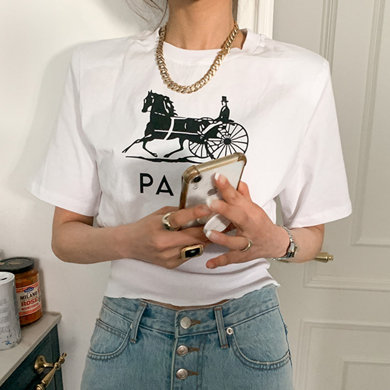 CCSHOP 合わせやすい 着瘦せ 半袖 ラウンドネック プリント アルファベット カートゥーン 夏 トップス