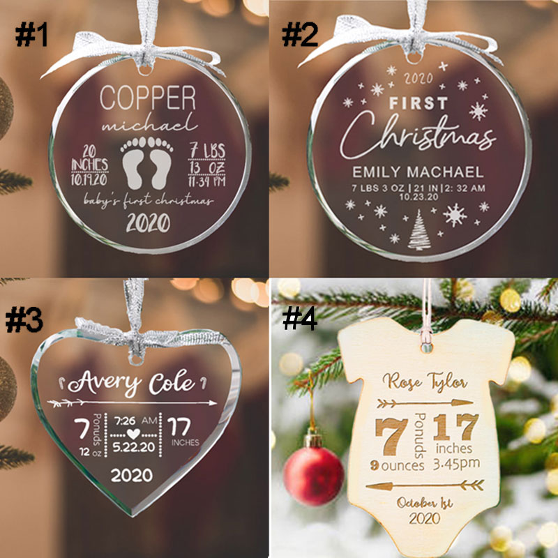 Who doesn't want to celebrate a sweet newborn's first Christmas. Why not do it with a personalized ornament the little one can keep forever? Record baby's birth with special ways and decorate this significant Christmas.