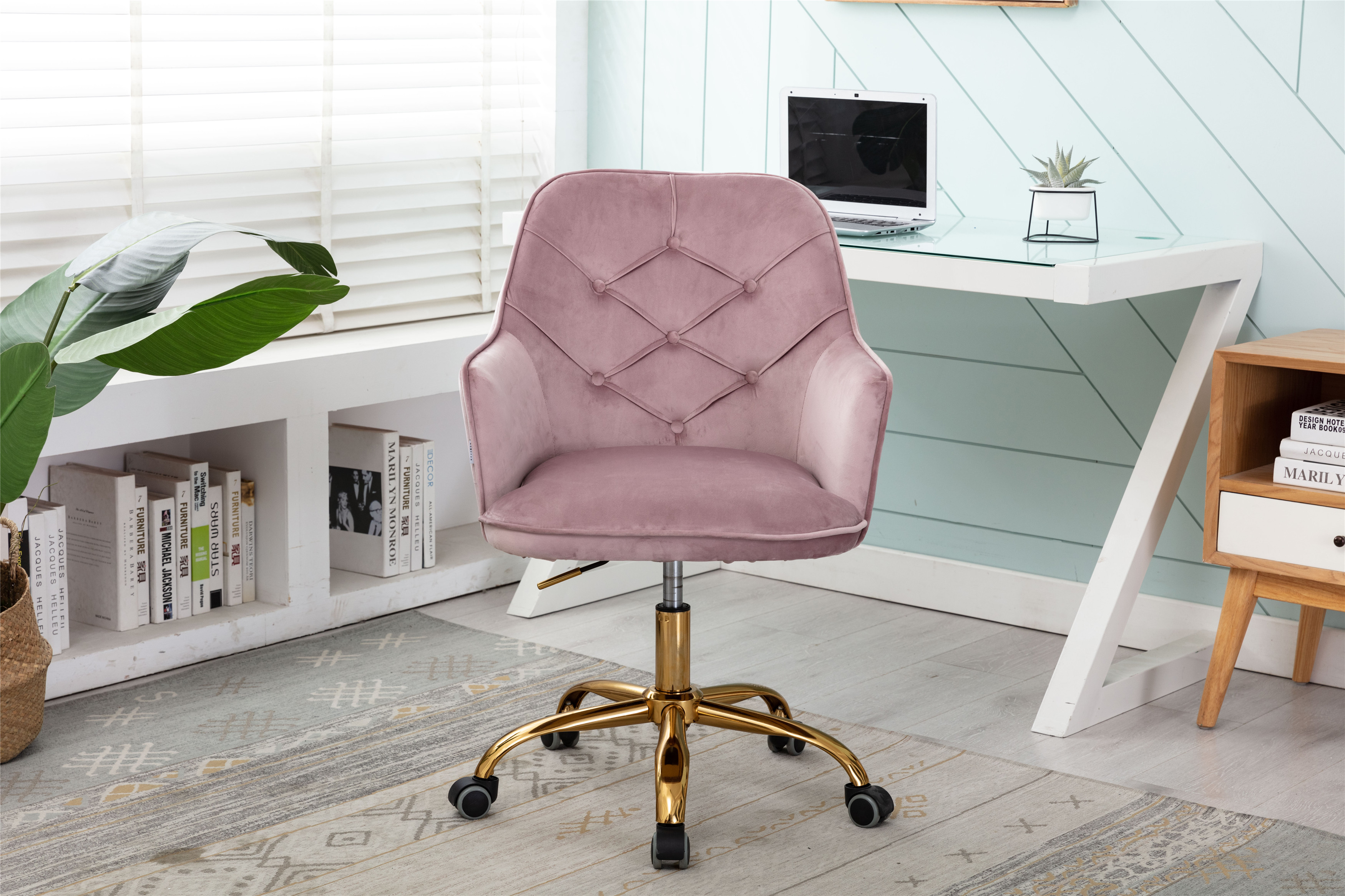 Accent Swivel Velvet Chair Vanity Shell Chair Tufted Arm Chair Home Office Swivel Chair with Gold Metal Frame