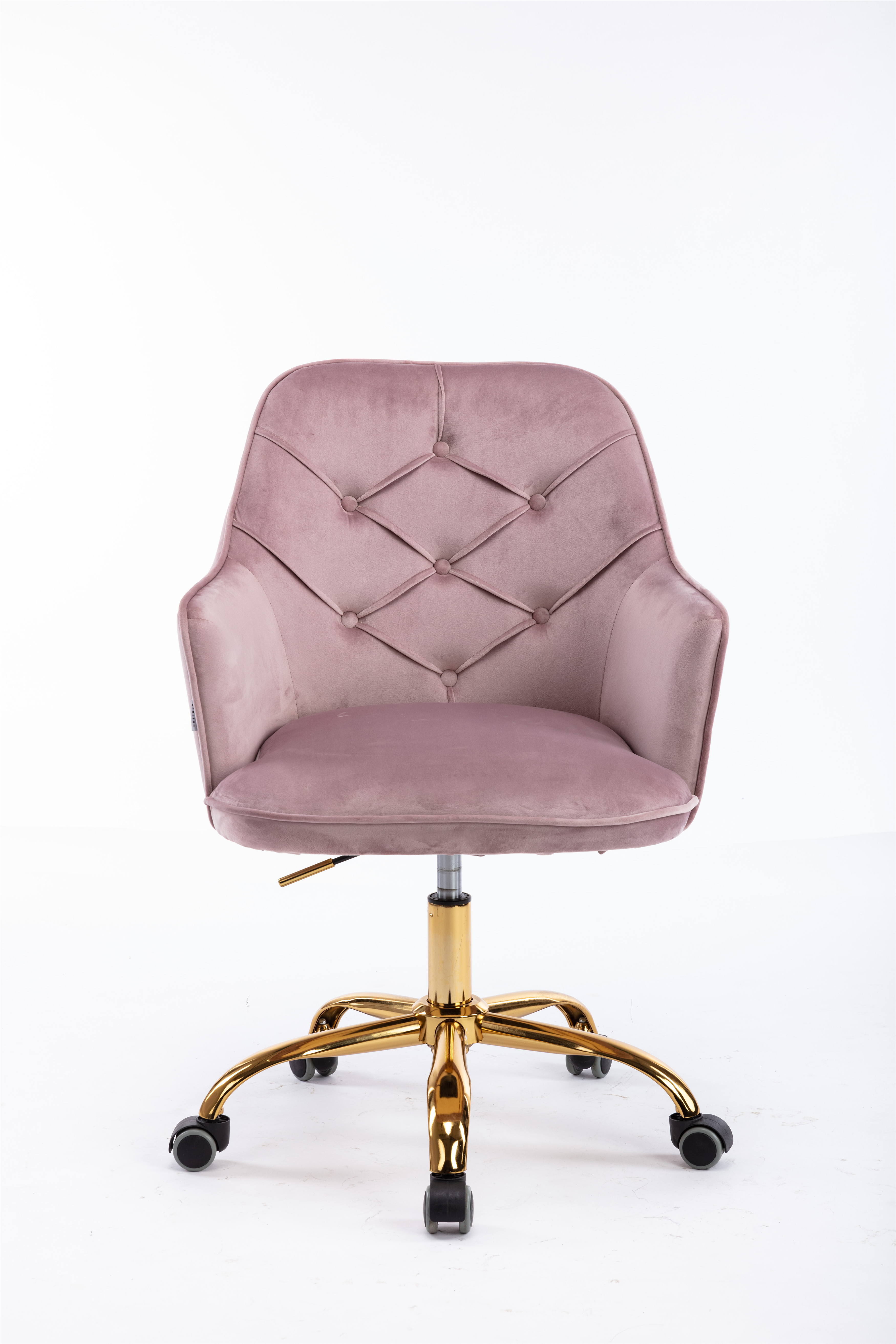 Adjustable Swivel Task Chair Velvet Upholstered Chair Velvet Shell Chair with Metal Gold Legs, Pink