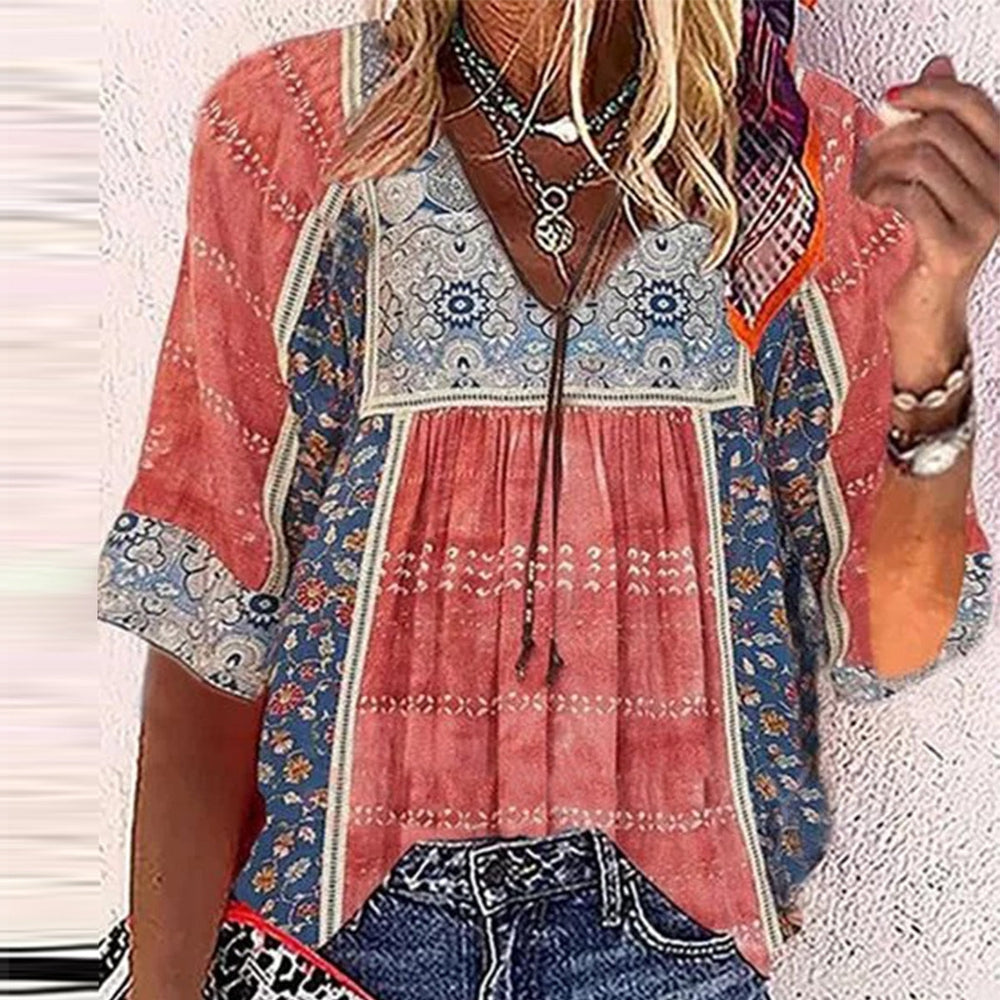 Boho Chic Colorful Prairie Half Sleeve Top