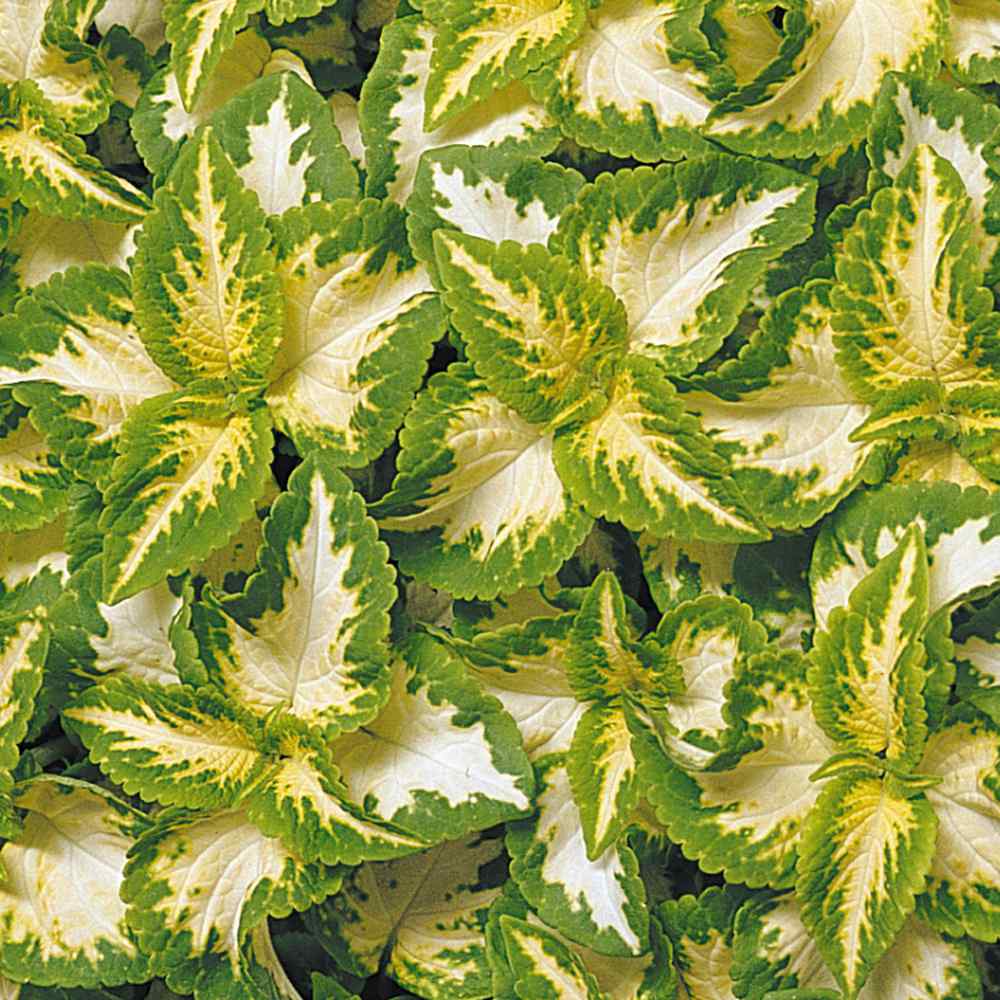 Coleus (Coleus Wizard Jade) - Start Coleus seeds for this exotic foliage plant that never disappoints! Wizard Jade has ivory at the center of the leaves and greens around the edges. It's a beautiful plant for a shade that can be mixed in containers with other shade-loving plants.