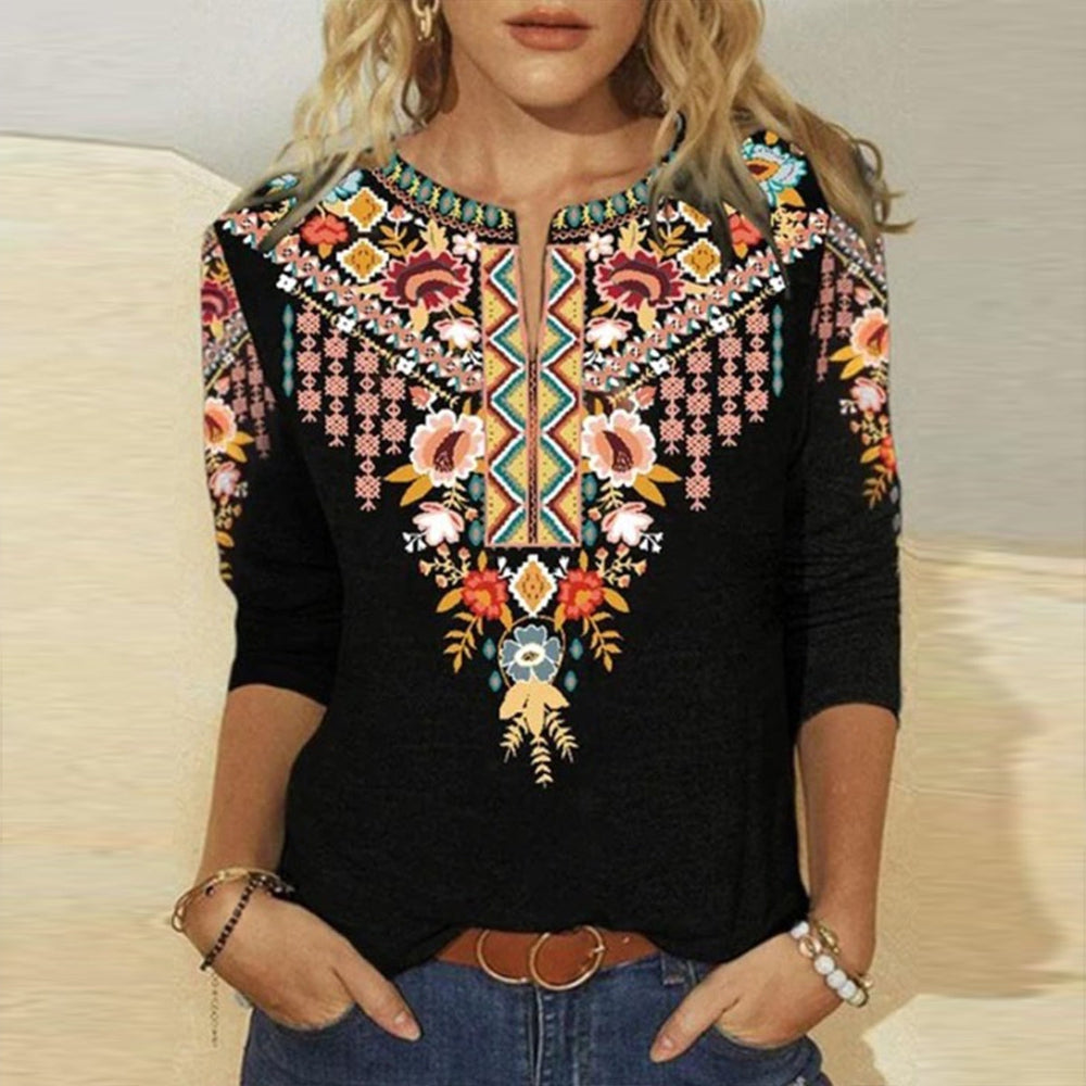 Cool Print Notched Neck Top