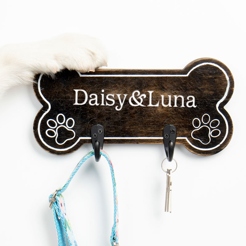 Dog Leash Holder,Personalized Bone Shape Wall Decor