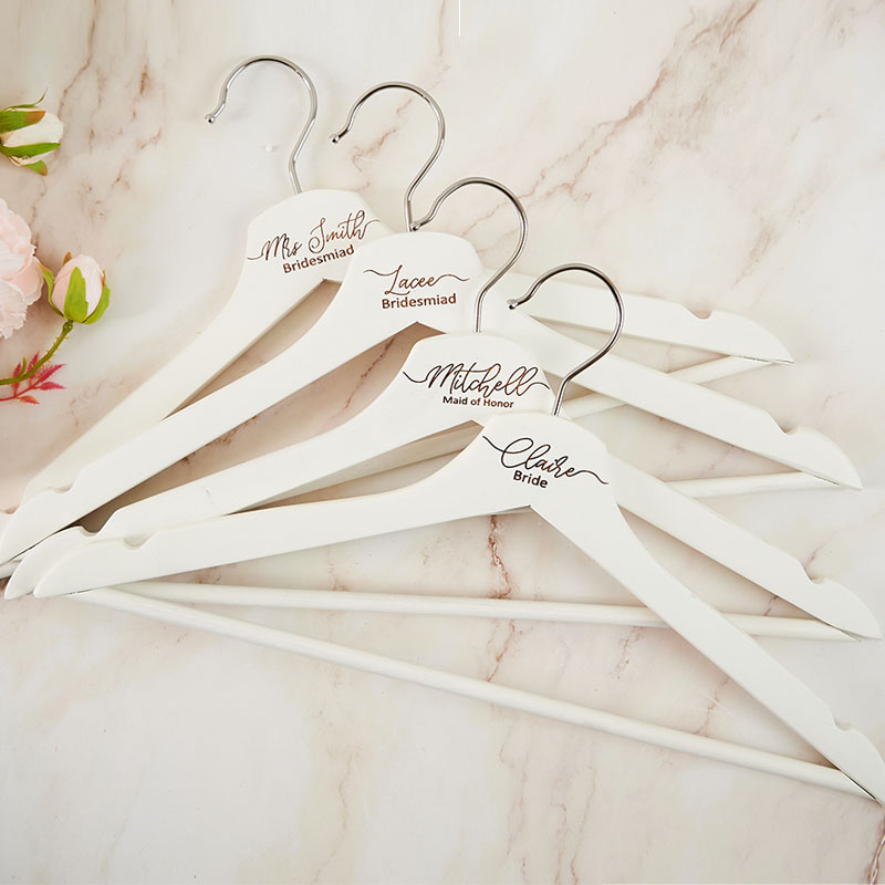 - Each bridal hanger is made from natural hardwood and expertly laser engraved to your specifications.