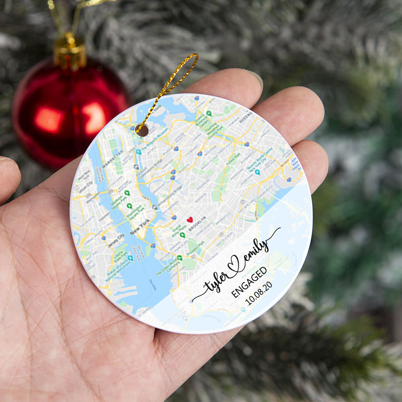 This design only comes with the City/Town zoomed out with heart on the location of the engagement. No other options will be provided. Meaning, whichever city/town is provided, the map will be of that city/town, with a heart over the location. If no specific location is provided for the heart placement, one will not be used.