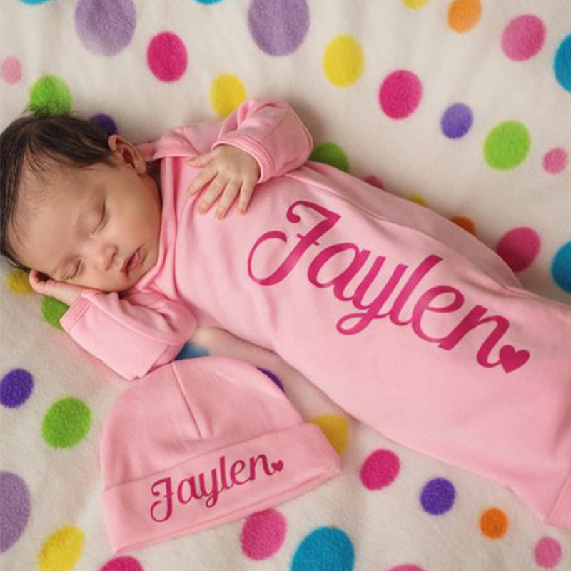 New Baby Coming Home Outfit Personalized Baby Gown with Baby Hat