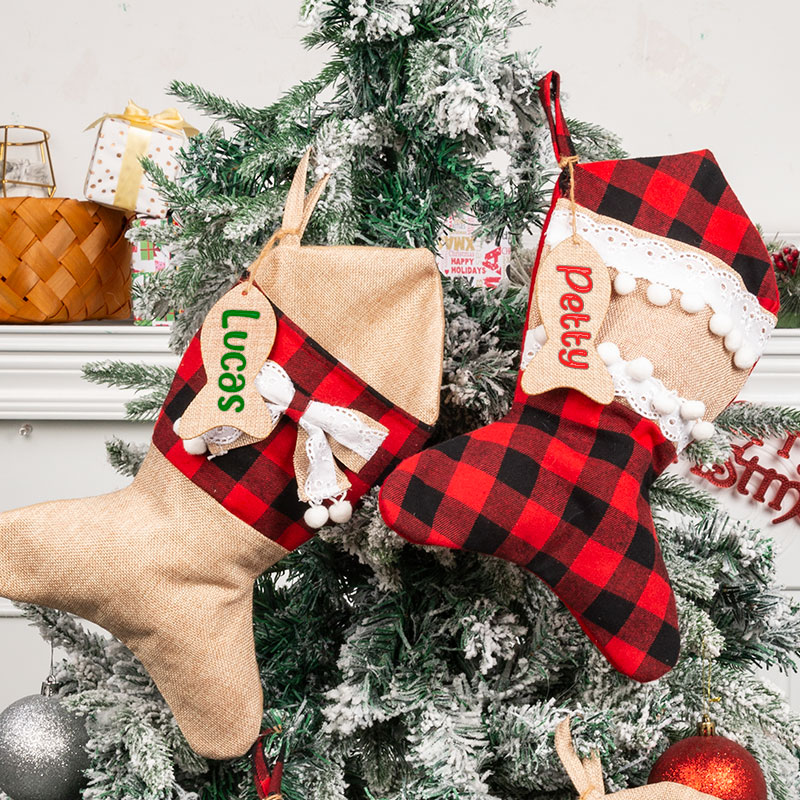 This is a bone and fish-shaped Christmas stocking. This stocking is suitable for snacks that all animals like.