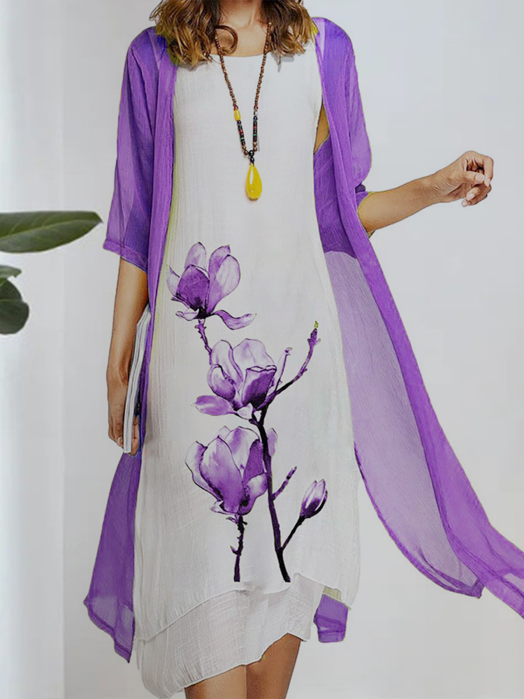 Summer New Ladies Casual Print Two Piece Midi Dress