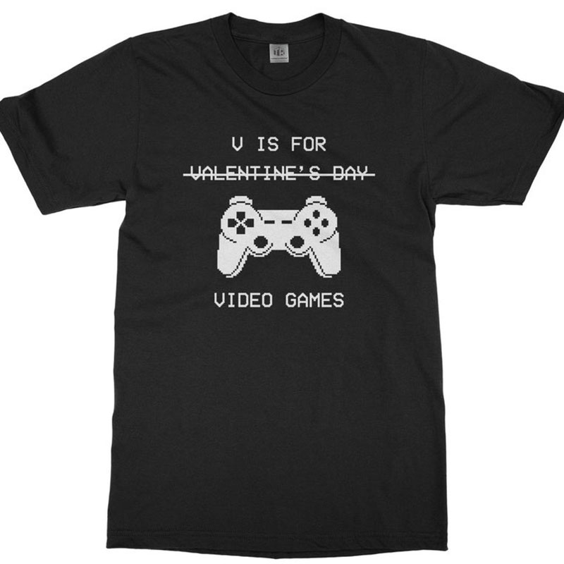 v-is-for-video-games-valentine's-day-youth-funny t-shirt