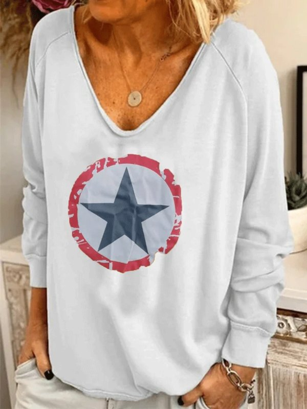 Women's Fashion New Five-pointed Star Printed Long-sleeved T-shirt