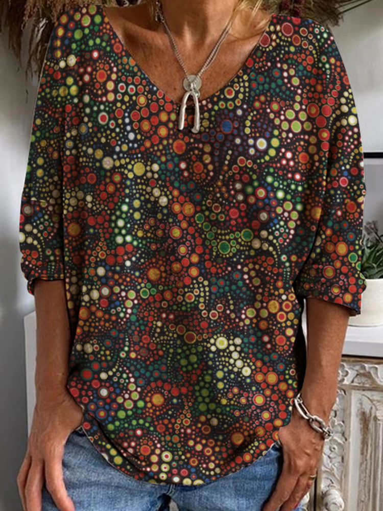 Women's New Fashion Retro Style Creative Colourful Printed Long Sleeve T-shirt